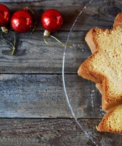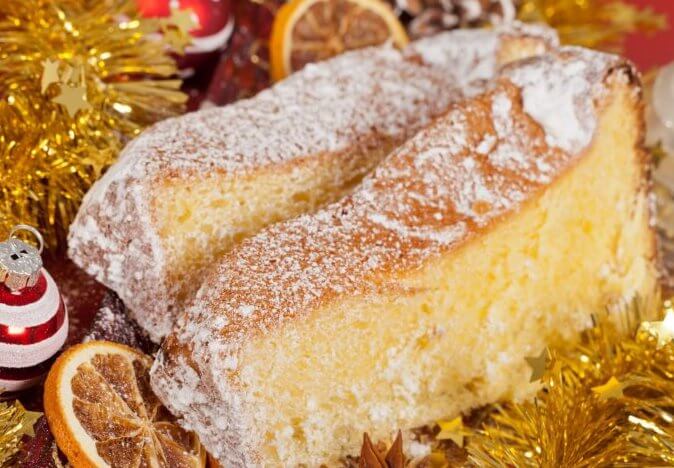 Pan d’Oro bedeutet “goldenes Brot” – angeblich, weil die reichen Venezianischen Adeligen diesen flaumigen Germkuchen mit dünnen Goldplättchen belegten. Pandoro ist ein typischer italienischer Weihnachtskuchen, der seine goldige Farbe den vielen Eiern zu verdanken hat. Wie der Panettone ist der Pandoro ein Hefekuchen, wird allerdings immer ohne Rosinen bzw kandierte Früchte gebacken. Drei Tage lang soll der Hefeteig aufgehen – aber die Geduld wird belohnt: ein guter Pandoro ist sehr weich und flaumig, und gar nicht trocken (wie leider oft die industrielle Variante…). Am liebsten essen wir den Pandoro allerdings mit Pistazien- oder Nougatcreme drauf, egal wieviele Kalorien das zusammen ergibt 🙂