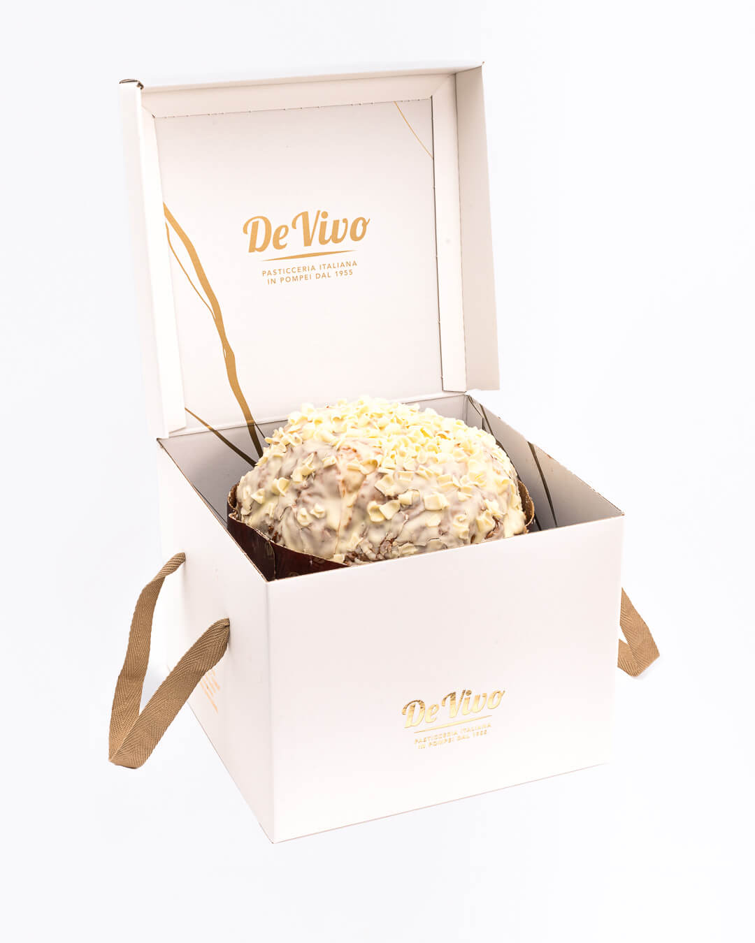 Aus Pompei, von der bekannten Konditorei DeVivo, kommt dieser fluffig-flaumige Panettone mit Zitrone. Die Zitronenfüllung dieses Panettone wird mit echtem Limoncello von Sorrent verfeinert. Die exquisite Glasur mit weißer Schokolade passt geschmacklich besonders gut – eine wahre Delikatesse aus dem Süden Italiens.