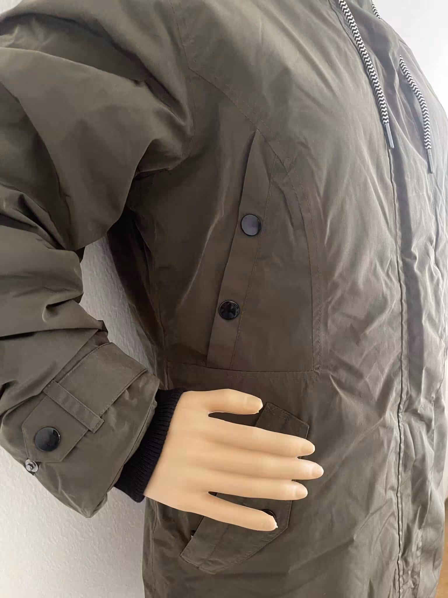 Zudem begeistert der lässige Wintermantel mit seitlichen Pattentaschen, Brusttaschen, Innentasche und wetterfester Materialmischung inklusive warmer Wattierung.