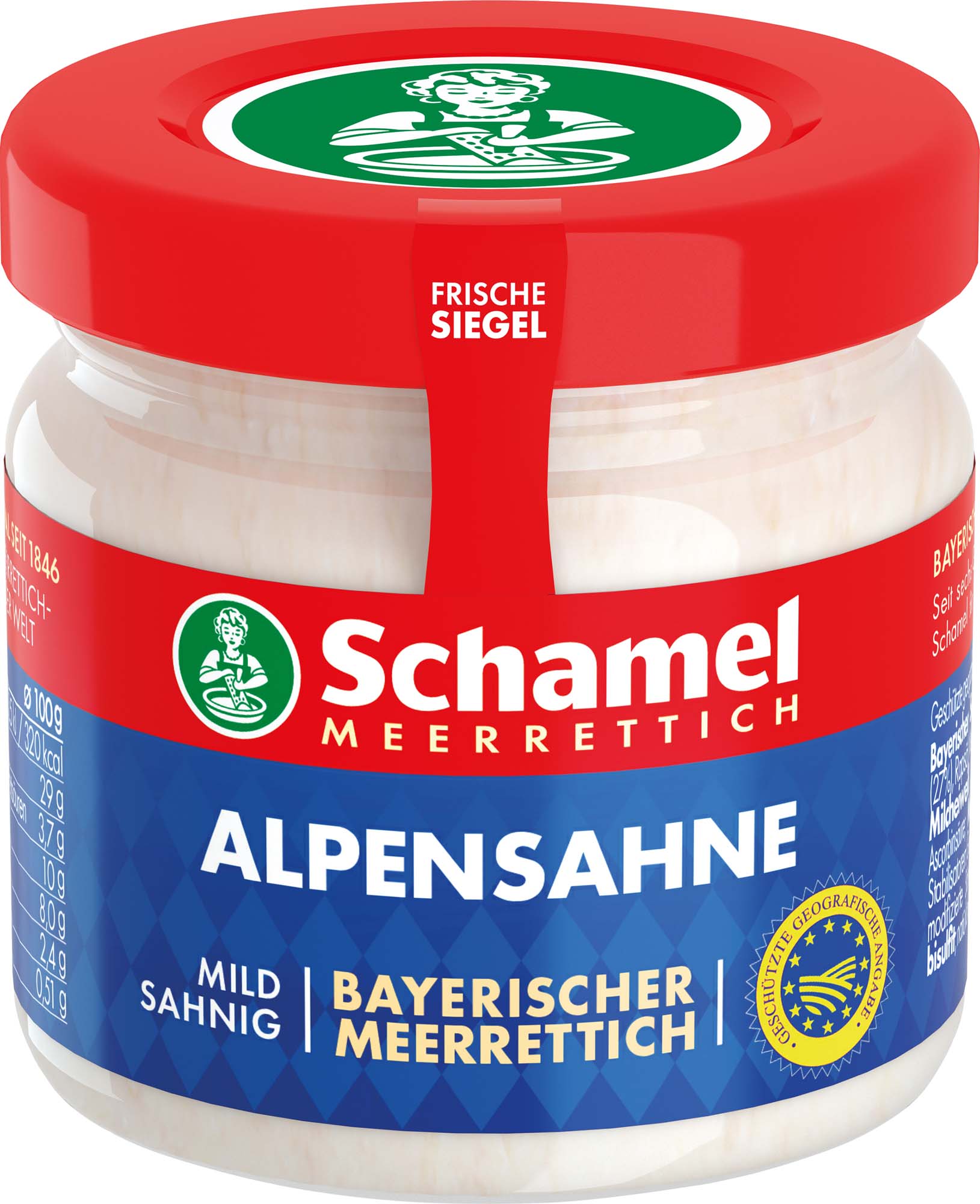 Unser Schamel Meerrettich Alpensahne wird aus 100% bayerischer Meerrettich-Rohware frisch und fein gerieben und mit bester Alpensahne zubereitet.