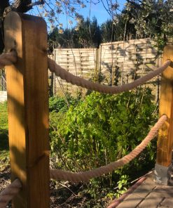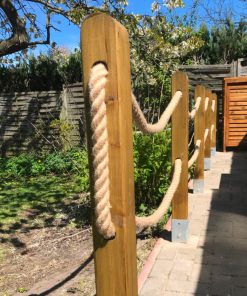 Dieser hochwertige Pfosten aus kesseldruckimprägnierter Kiefer eignet sich ideal für den Aufbau eines stilvollen und langlebigen Seilzauns (Rope Fence / Schiffstau-Zaun). Mit einer Höhe von 100 cm und einem stabilen Querschnitt von 90 × 90 mm bietet der Pfosten zuverlässigen Halt für starke Naturjuteseile und Tauwerk.