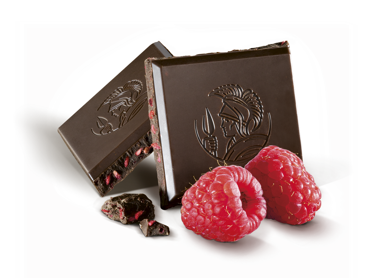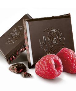 Probieren Sie den einzigartigen Geschmack dieser feinen Tafel Zartbitterschokolade mit Himbeeren. Die perfekte Verbindung von fruchtiger Himbeersäure und bitterem Schokoladenaroma.