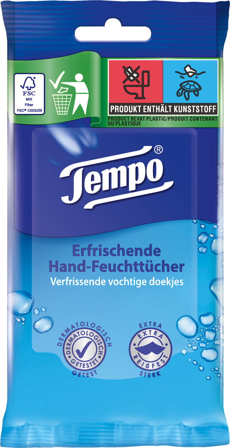 Tempo Feuchttücher Hände, erfrischend sind der ideale Begleiter für unterwegs.