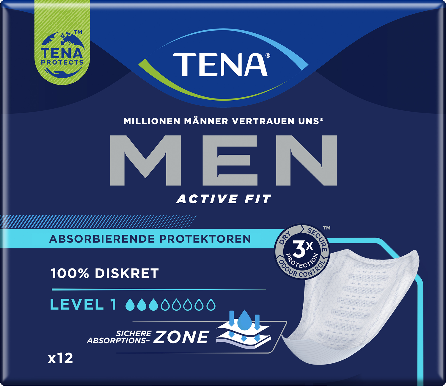 Tena Men Einlagen Level 1 sind speziell für Männer mit leichter Blasenschwäche entwickelt. Sie bieten diskreten Schutz durch ihre schmale, anatomisch angepasste Form und eine sichere Absorptionszone, die Flüssigkeit effizient einschließt. Die Odour Control™ Technologie neutralisiert Gerüche, während das weiche, atmungsaktive Material für angenehmen Tragekomfort sorgt. Ideal für den Alltag und leicht in der Unterwäsche zu fixieren.