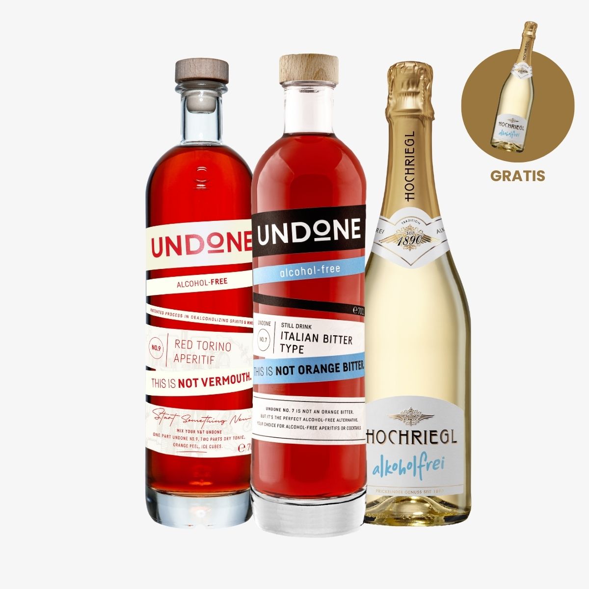 Mixe dir deinen alkoholfreien Negroni Sbagliato (NOgroni Sbagliato) mit UNDONE zu Hause ganz einfach selbst. Dazu gibt es noch 1x Hochriegl Alkoholfrei geschenkt zu jeder Bestellung, für weitere prickelnde Genussmoment ohne Alkohol!