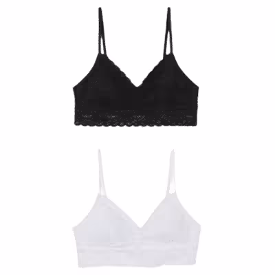 Weiche, bügellose BHs aus Spitze mit breitem Saum unten.